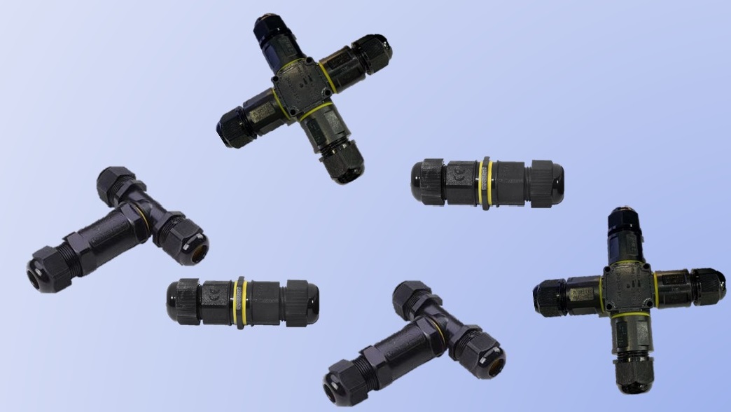 Connecteurs pour relier les luminaires d'extérieurs, leurs étanchéités sont assurées IP68. L’ensemble des
